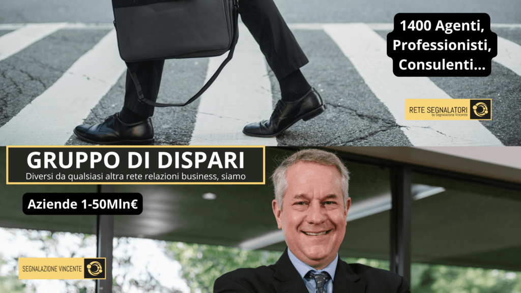 Molti mi chiedono: “Ma siete come BNI, OSA, Quantico o altre organizzazioni relazionali business?” La risposta è semplice e decisa: no, siamo diversi. Siamo Segnalazione Vincente, e abbiamo creato il GRUPPO DI DISPARI, un sistema unico che si basa su un meccanismo potente e distintivo: il MOTORE DELLA RECIPROCITÀ (MDR).